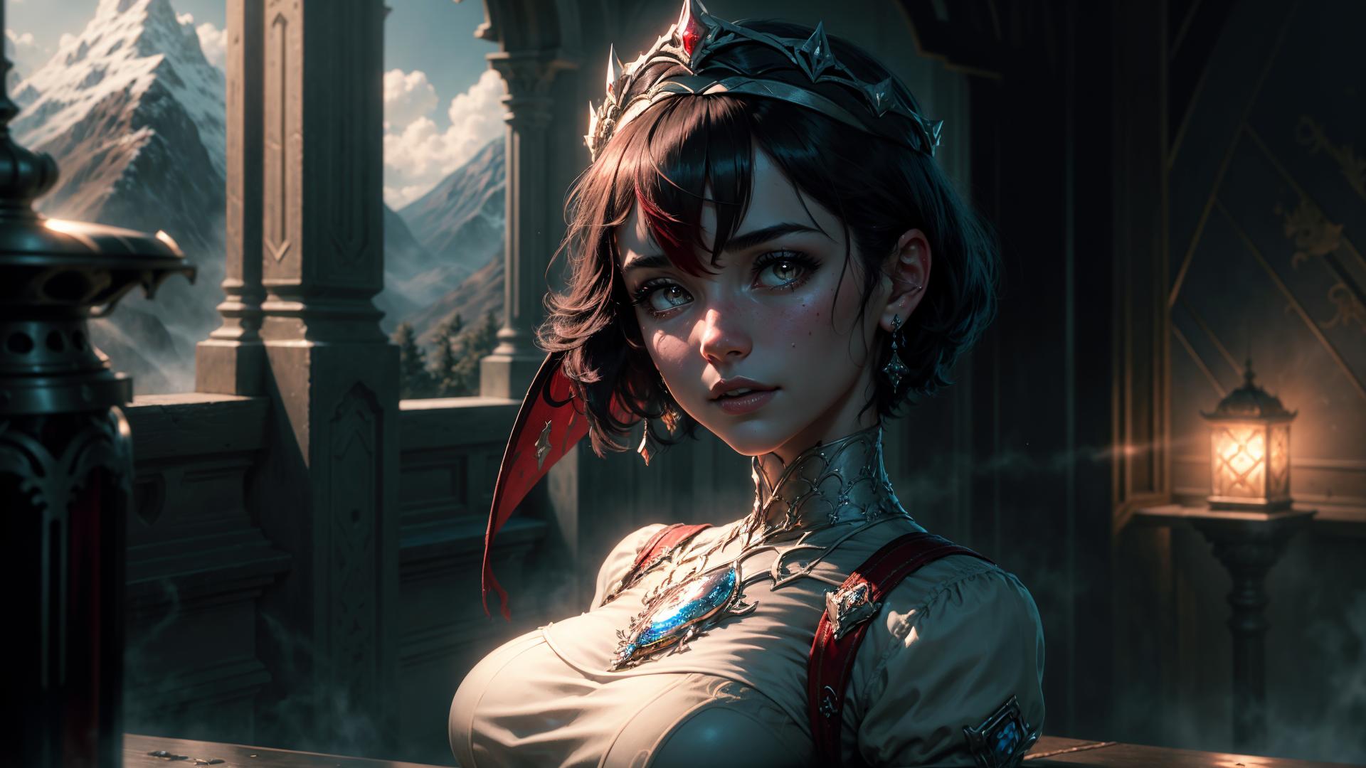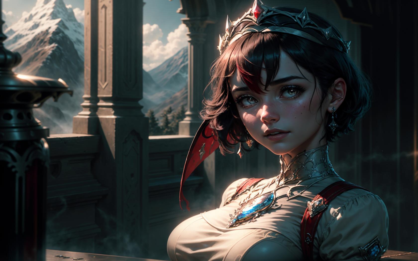 <lora:rosaria0.85dim32:1>, rosariadef, short hair,headdress. tiara,