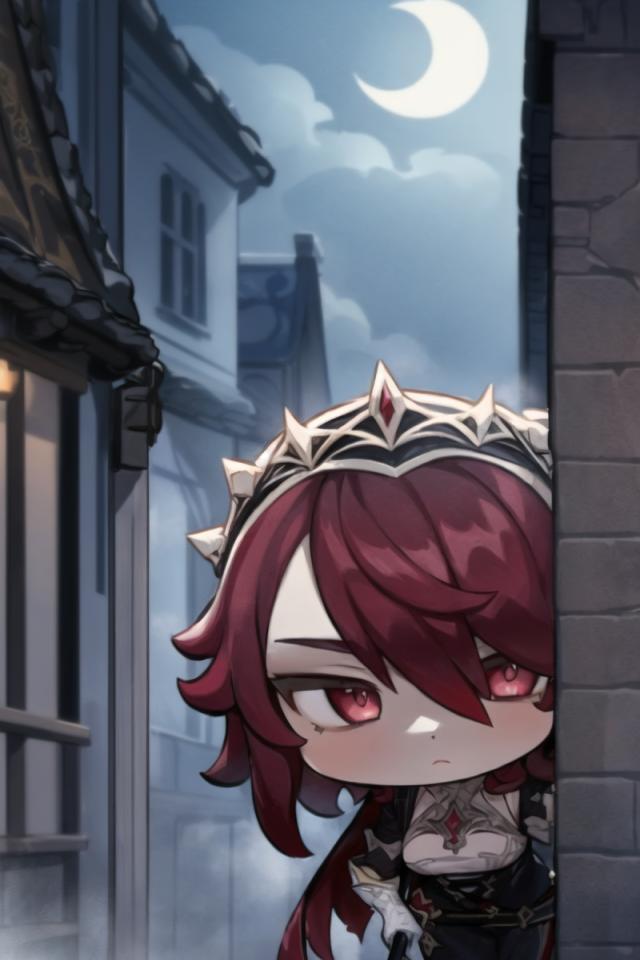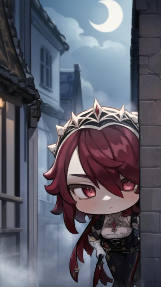 | Prompt | (highly detailed:1.5), best quality,dynamic pose,sharp focus,(8k), (4k),(Masterpiece), (Best Quality), fantasy, extremely detailed, intricate, hyper detailed, (perfect face), illustration,soft lighting, <lora:rosaria0.85dim32:1>, rosariadef, red short hair,long headdress. tiara, (white gloves), night, moon, ((mist)), (rich medieval fantasy town background), (((spying a thug in the street,looking at thief. holding weapon))), partially hidden by mist, (standing shadowy upright behind a wall), angry, focused, <lora:GenshinStickers:1>chibi:2, |