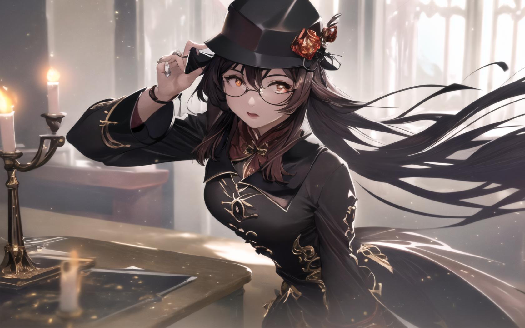 | Prompt | (dramatic:0.8),(highly detailed:1.5), (realistic:1.4),(digital art:1.9),(romantic:0.8),(heroic:0.9), <lora:beautiful-eyes:0.8>, (epic:1, perfect artwork), best quality,sharp focus,(8k), (4k),(Masterpiece), (Best Quality), fantasy, extremely detailed, intricate, hyper detailed, (perfect face), illustration,soft lighting, Ultra detailed fantasy environment, clearly worked out detail, intricate, cinematic,(depth of field), ( dramatic lighting:1.2), <lora:hutao1:1>,hutaornd,1girl, solo,very long hair,glasses, night, candles on the tables, plates, food, (standing in the biggest crowded dining hall of a very rich castle), (black witch Hat:1.4), (harry potter student outfit:1.5), magic, magic everywhere, ((full body)), |