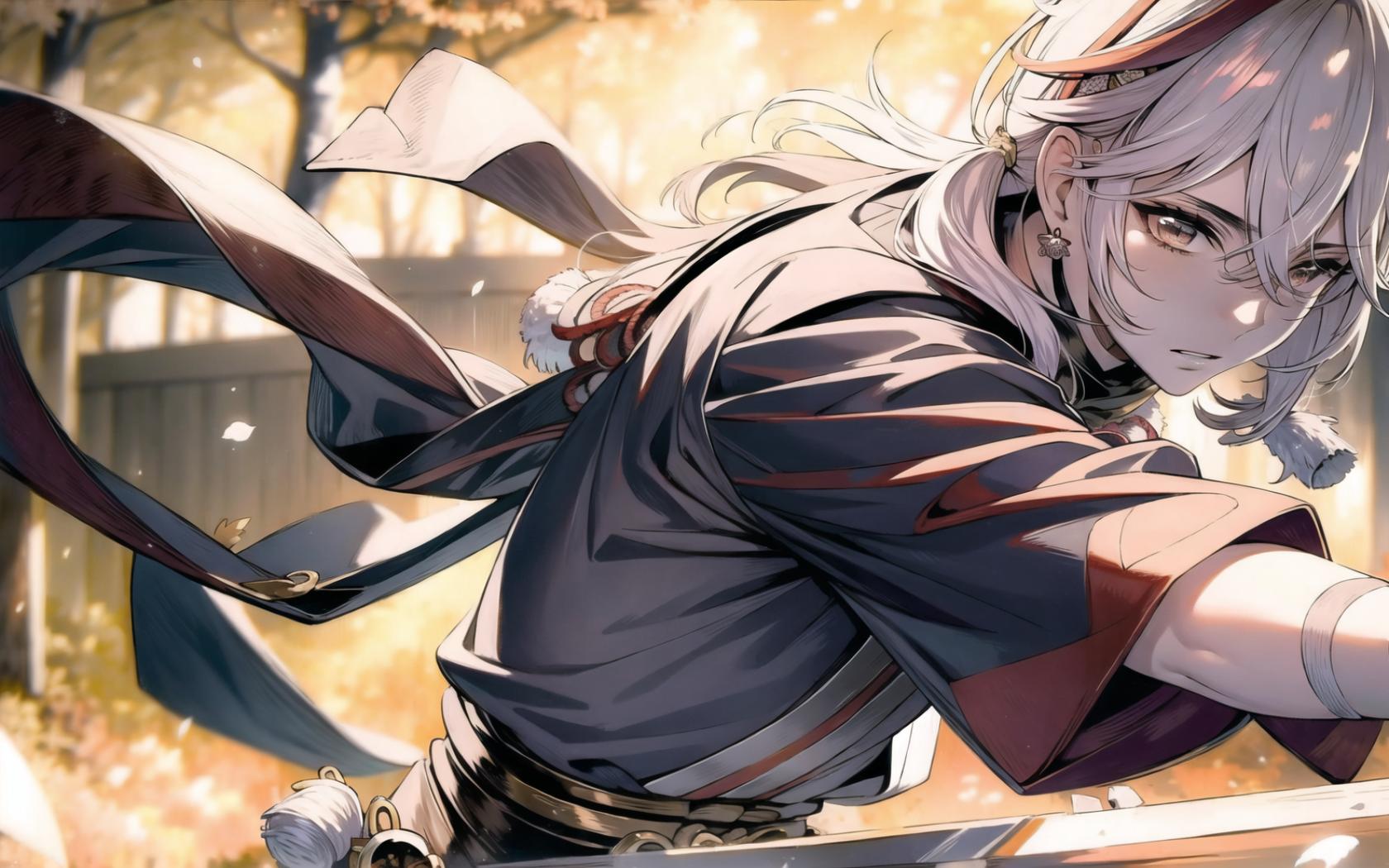 | Prompt | (style of Inoue Takehiko:2), (dramatic:1.2),(highly detailed:1.5), (realistic:1.05),(digital art:1.7),(romantic:1.4),(heroic:1.3), <lora:beautiful-eyes:0.7>, (epic:1.2, perfect artwork), best quality,sharp focus,(8k), (4k),(Masterpiece), (Best Quality), fantasy, extremely detailed, intricate, hyper detailed, (perfect face), illustration,soft lighting, Ultra detailed fantasy environment, clearly worked out detail, intricate, cinematic,(depth of field:1.2), ( dramatic lighting:1.2), <lora:kazuha2:1>,1boy, solo,male focus,eyes focus, weapon, holding weapon, outdoors, (sunset), autumn, fall, trees, maple leafs in the wind,sakura trees,wind, inside a forest at fall, (front of a japanese medieval temple), (dynamic pose:1.4), serious, focused,angry, upper body, cowboy shot, |