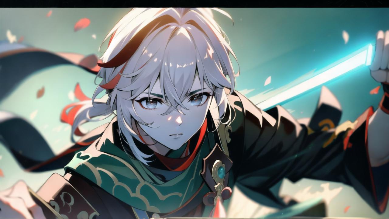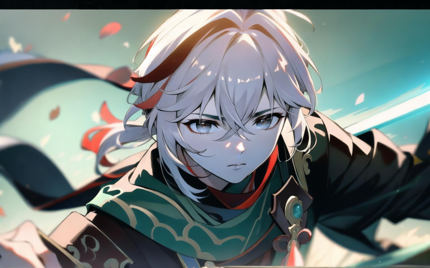 | Prompt | (style of Ruan Jia:2), (dramatic:1.2),(highly detailed:1.5), (realistic:1.05),(digital art:1.7),(romantic:1.4),(heroic:1.3), <lora:beautiful-eyes:0.7>, (epic:1.2, perfect artwork), best quality,sharp focus,(8k), (4k),(Masterpiece), (Best Quality), fantasy, extremely detailed, intricate, hyper detailed, (perfect face), illustration,soft lighting, Ultra detailed fantasy environment, clearly worked out detail, intricate, cinematic,(depth of field:1.2), ( dramatic lighting:1.2), <lora:kazuha2:1>,1boy, solo,male focus,eyes focus,(muscular), weapon, holding weapon, outdoors, (sunset), autumn, fall, trees, maple leafs in the wind,sakura trees,wind, inside a forest at fall, (front of a japanese medieval temple), (dynamic pose:1.4), serious, angry, looking at viewer, upper body, cowboy shot, |