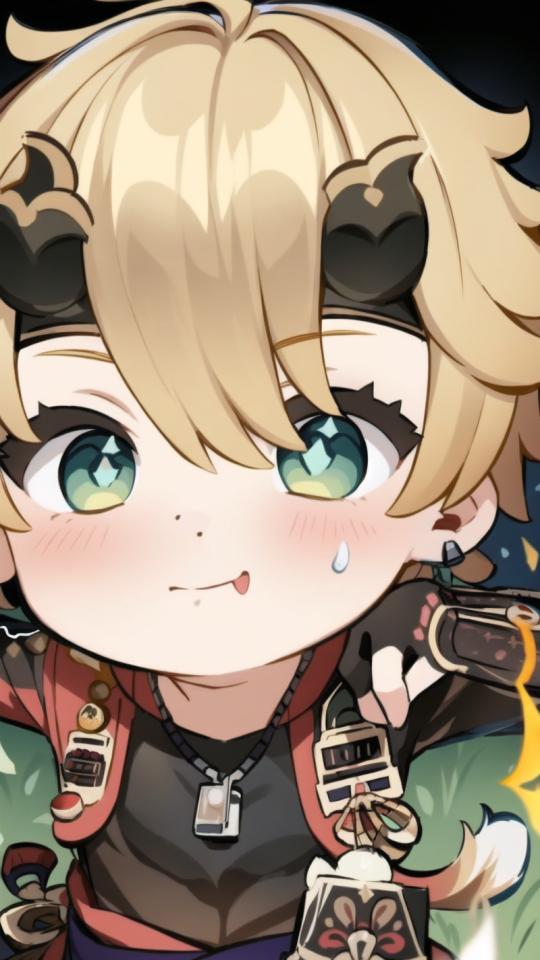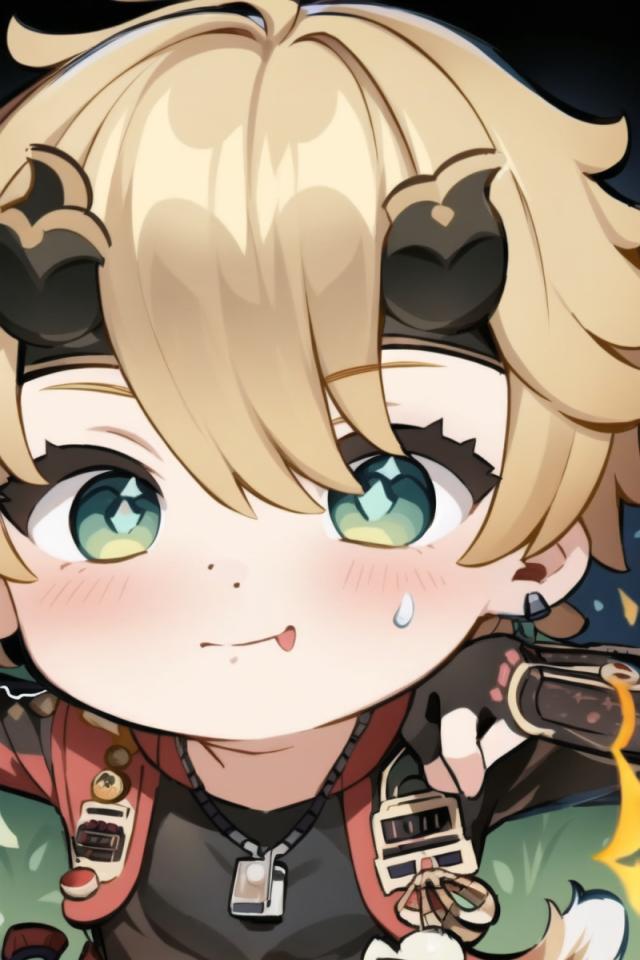 | Prompt | (perfect artwork), best quality,,(8k), (4k),(Masterpiece), (Best Quality), extremely detailed, intricate, hyper detailed, (perfect face), illustration,soft lighting, clearly worked out detail, intricate, cinematic,(depth of field), <lora:thoma:1>thoma (genshin impact), 1boy, male focus, dog tags, horned headwear, green eyes, horns, gloves, fake horns, solo,fingerless gloves, bangs, headband, hair between eyes, ((short blonde hair,muscular)), running in grass, playing with dog, <lora:GenshinStickers:1>chibi style:1.9, |