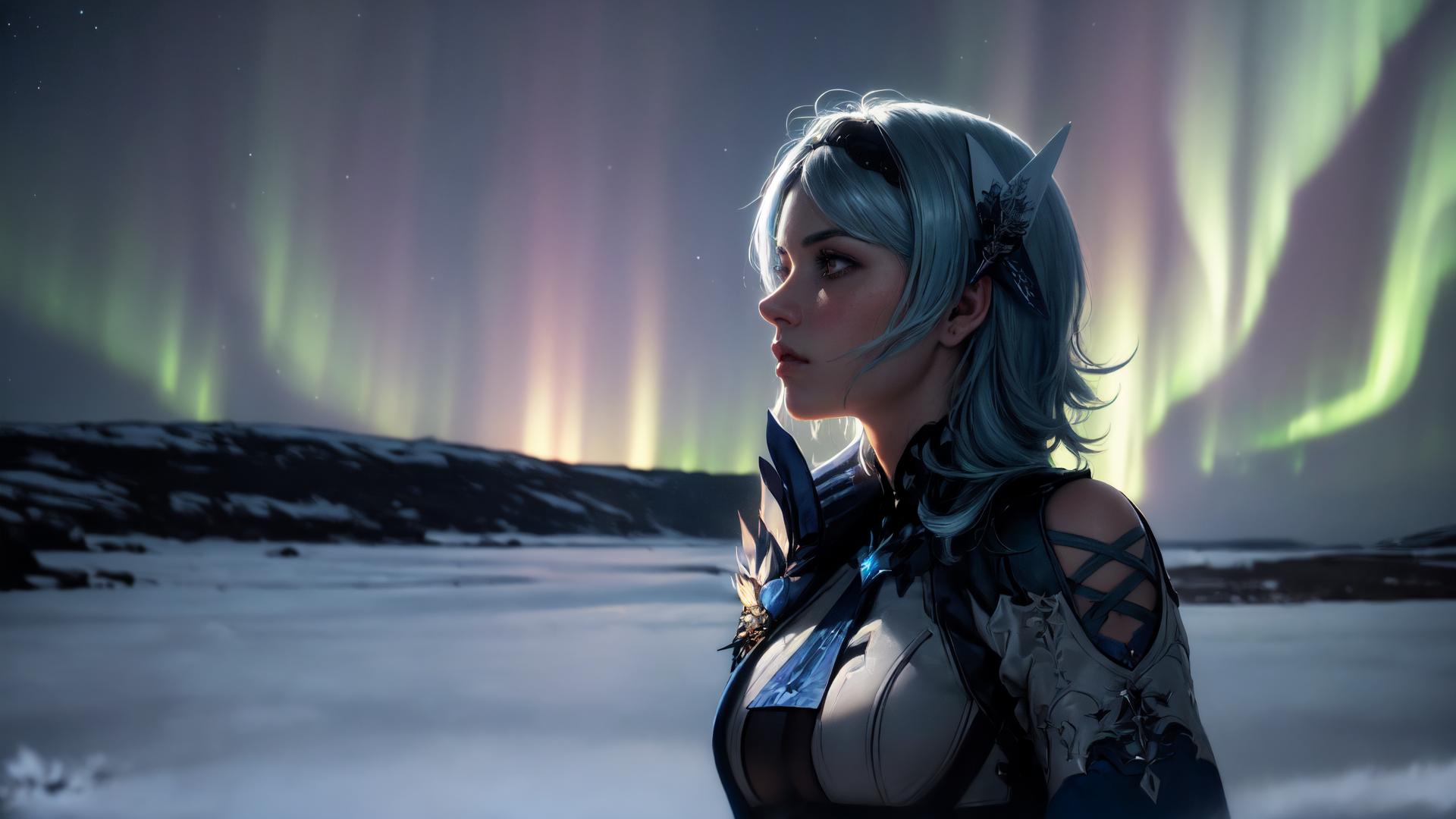 ((galaxy background,starry night,nebula,sword planted on the ground,aurora borealis)),