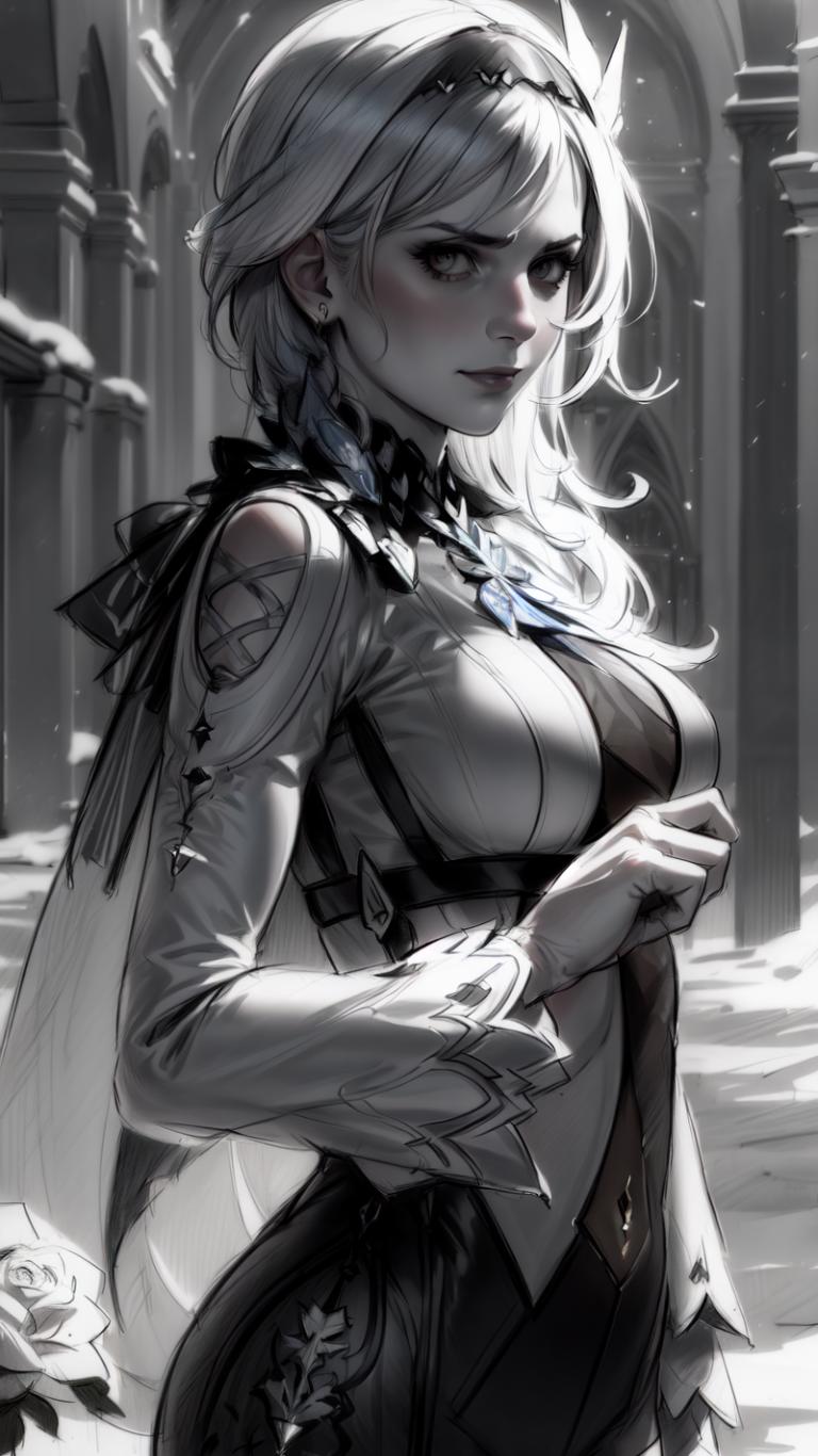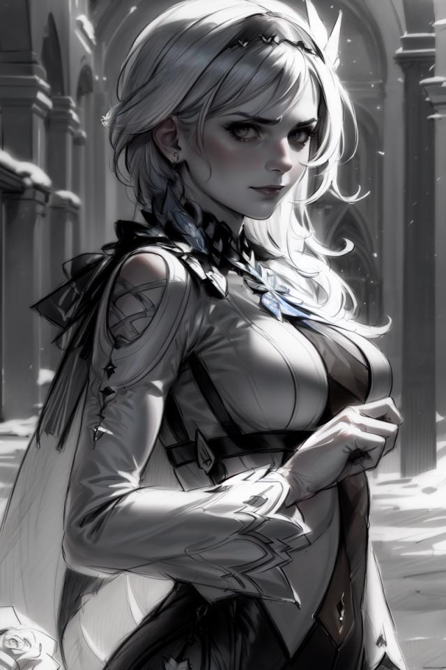 ((deep intensive glance, light smile,magical ice aura, frost aura)),