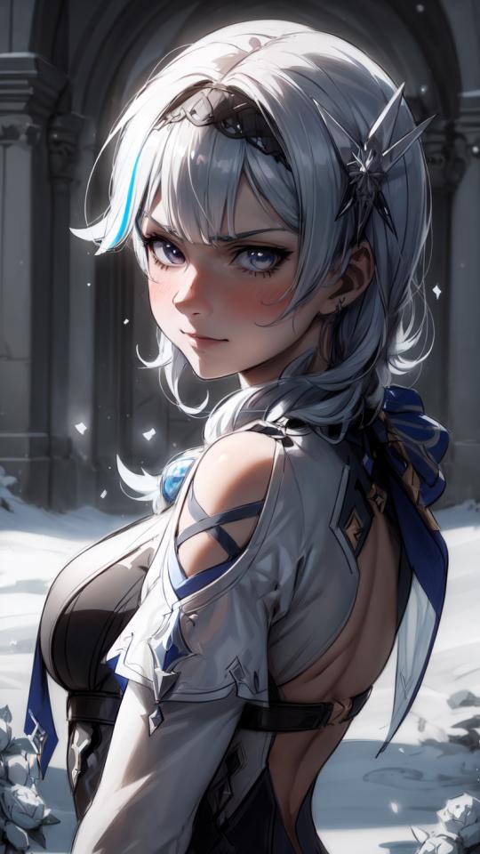 ((deep intensive glance, light smile,magical ice aura, frost aura)),