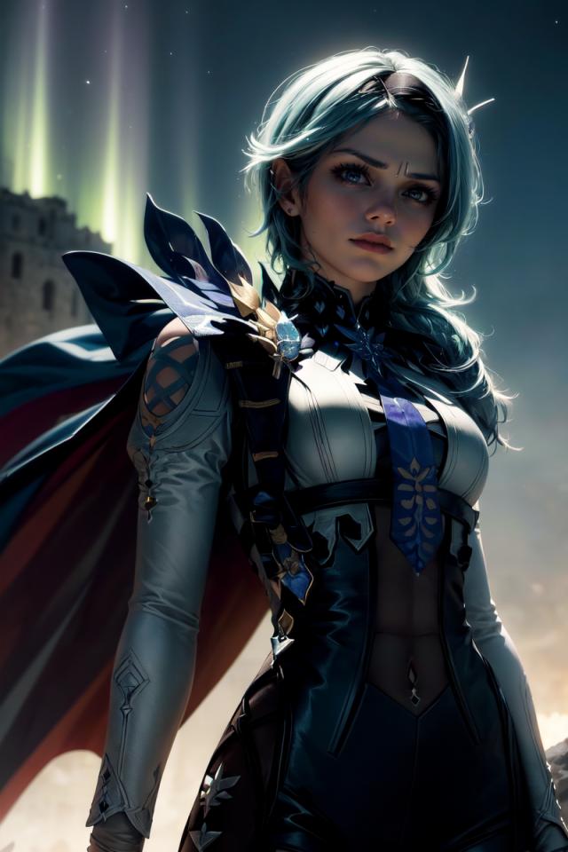 | Prompt | <lora:eula2:1>(close view) of ((euladef)),solo, frost aura, frozen ice aura, light blue glowing aura, light blue short hair,purple and gold eyes,