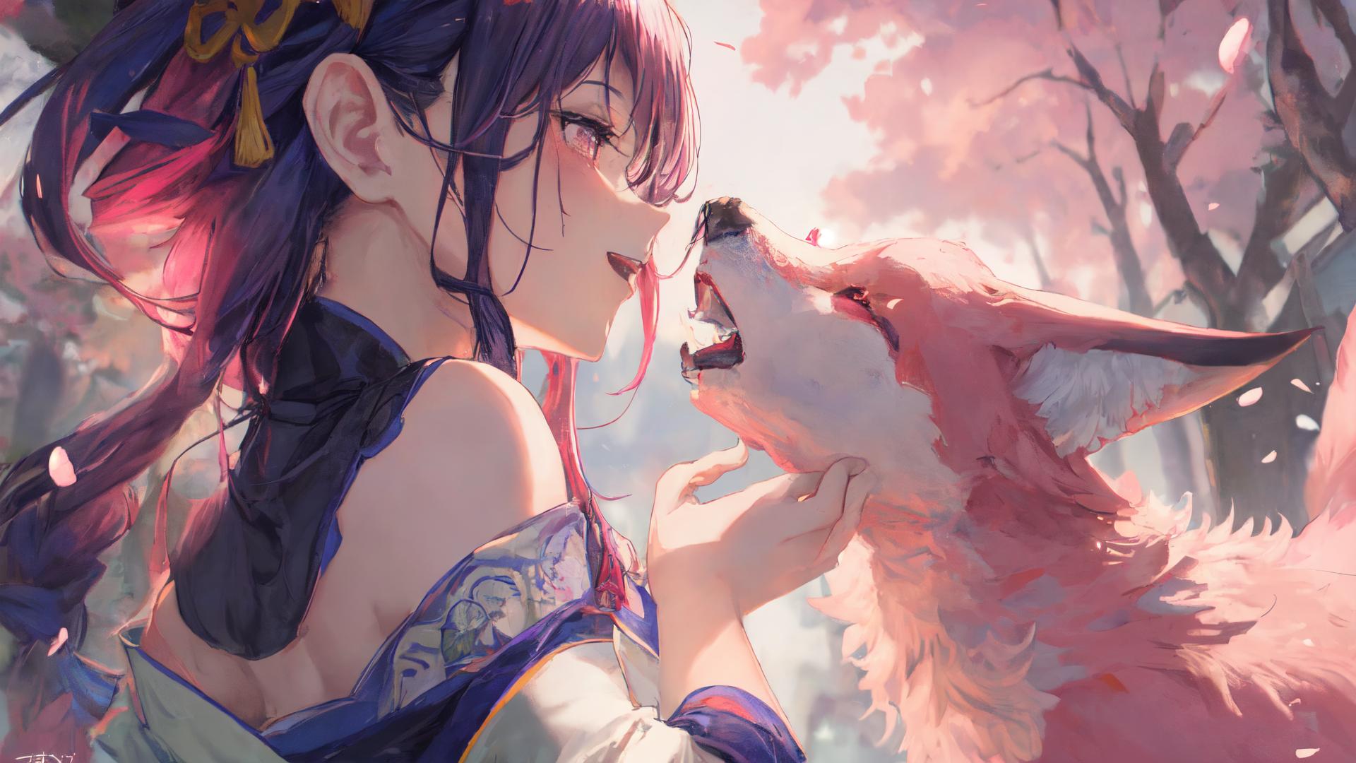 BREAK (petting a magical electric (((pink))) fox on the grass, pink kitsune:1.2), BREAK ( anime art, manga art:1.3), best quality,dynamic pose,sharp focus,(8k), (4k),(Masterpiece), (Best Quality), fantasy, extremely detailed, intricate, hyper detailed, (perfect face), soft lighting,(specular lighting:1.4), <lyco:neg4all_bdsqlsz_V3.5:2>(masterpiece,best quality,ultra_detailed,highres,absurdres:1.2), <lora:add_detail:0.3> |