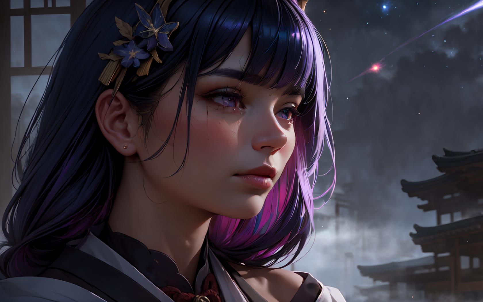 | Prompt | <lora:raidenshogun1:0.9> upper body of raidenshogundef, ((solo)),