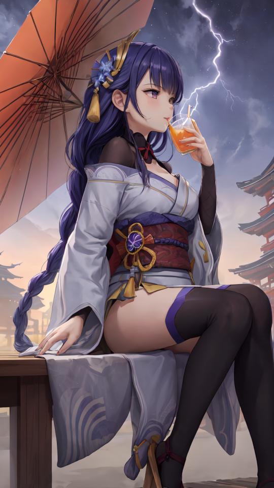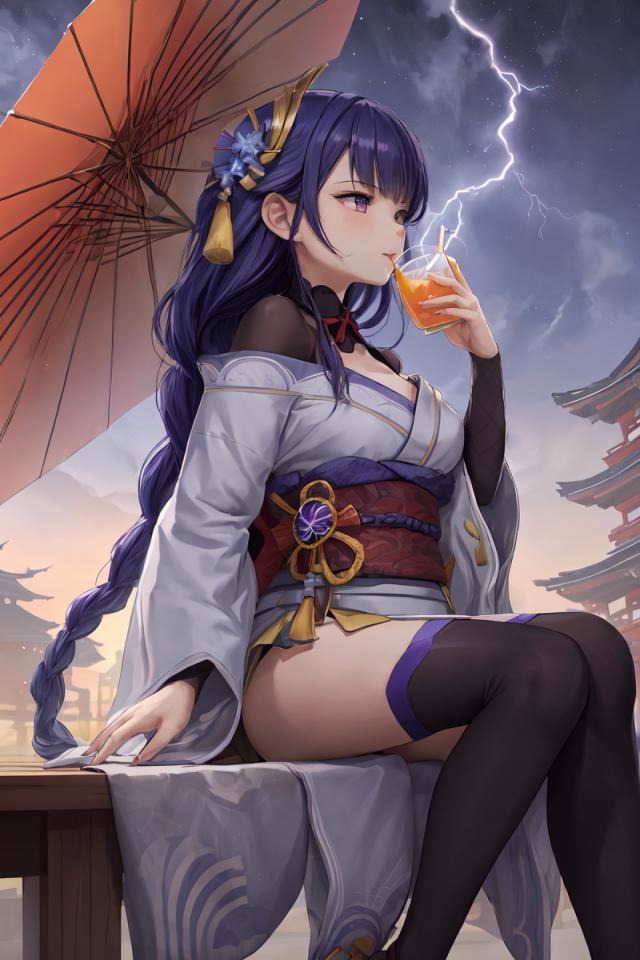 | Prompt | <lora:raidenshogun1:1>(close) side view of raidenshogundef,long braid hair,