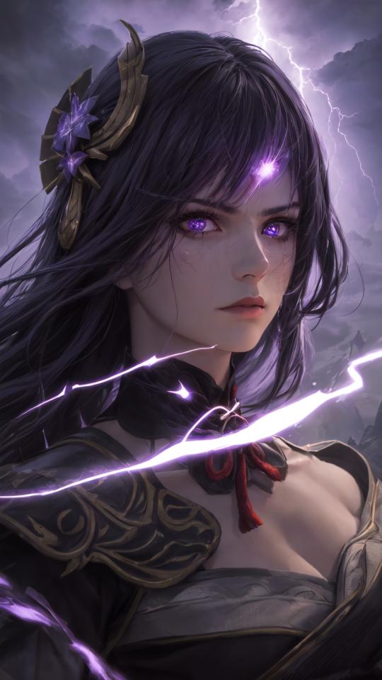 outdoors, storm, dark clouds,(mist,glowing purple aura,lightnings:1.6),