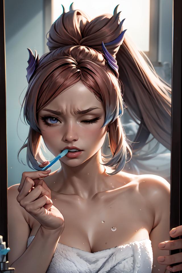 (brushing teeth,holding toothbrush,holding glass of water,clenched teeth, sleepy),left eye closed,(grumpy),