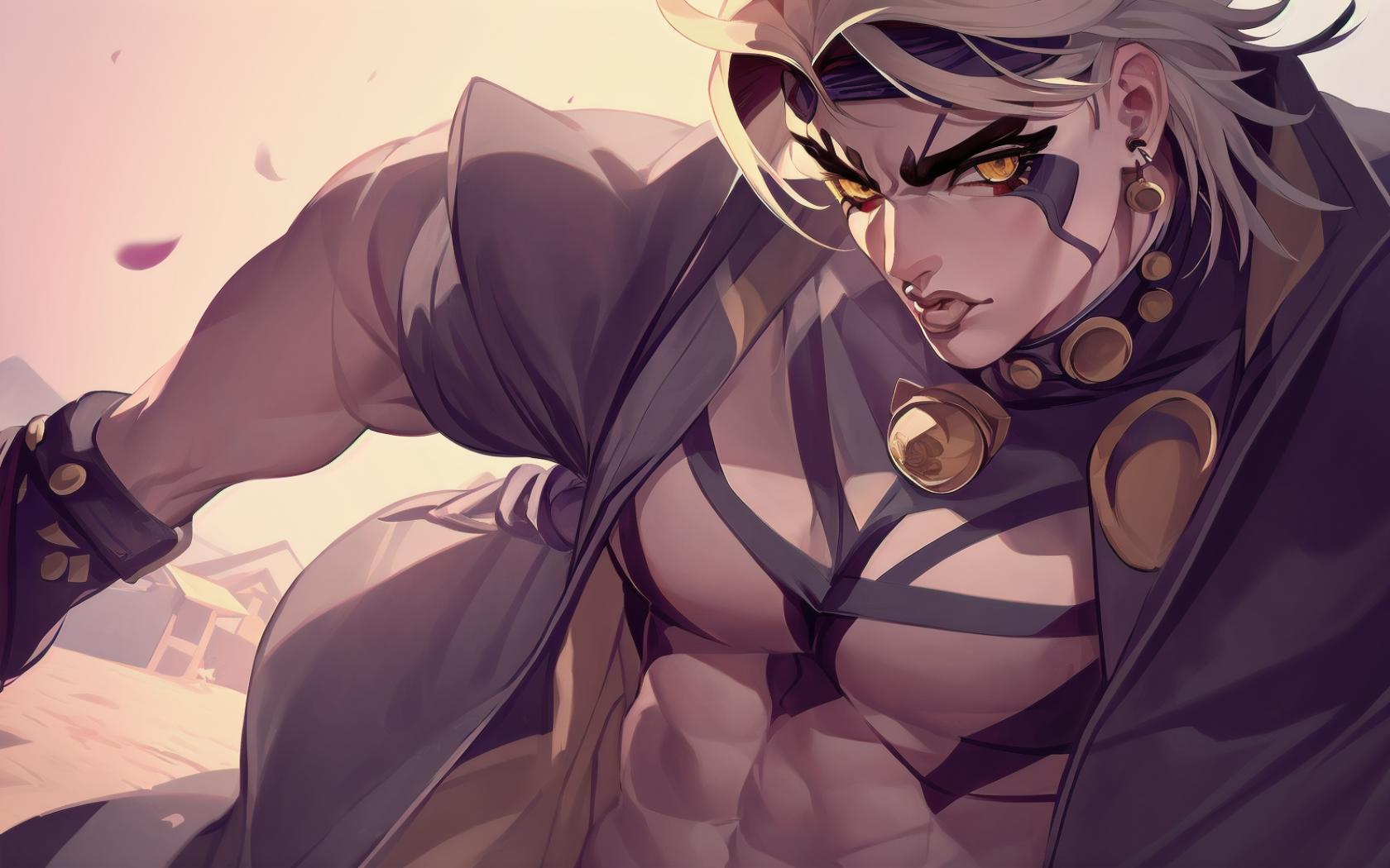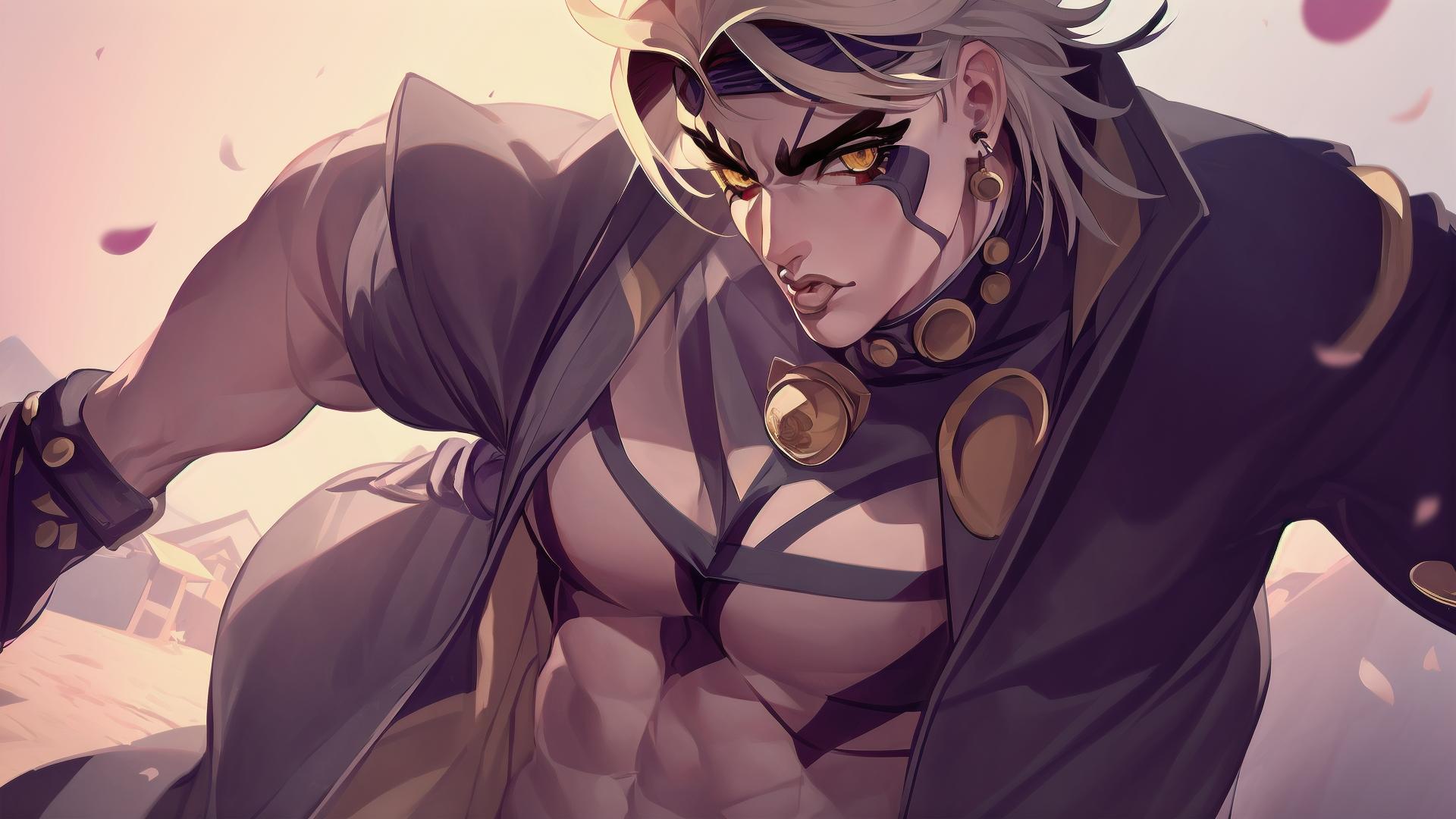| Prompt | (highly detailed:1.5), (perfect artwork), best quality,,(8k), (4k),(Masterpiece), (Best Quality), extremely detailed, intricate, hyper detailed, (perfect face), illustration,soft lighting, clearly worked out detail, intricate, cinematic,(depth of field), <lora:itto:1>1boy, male focus,(muscular), (red horns),white hair, outdoors,japanese medieval town background, sakura, sakura blossoms, heroic pose, ((full body)), (jojo style:1.7), |