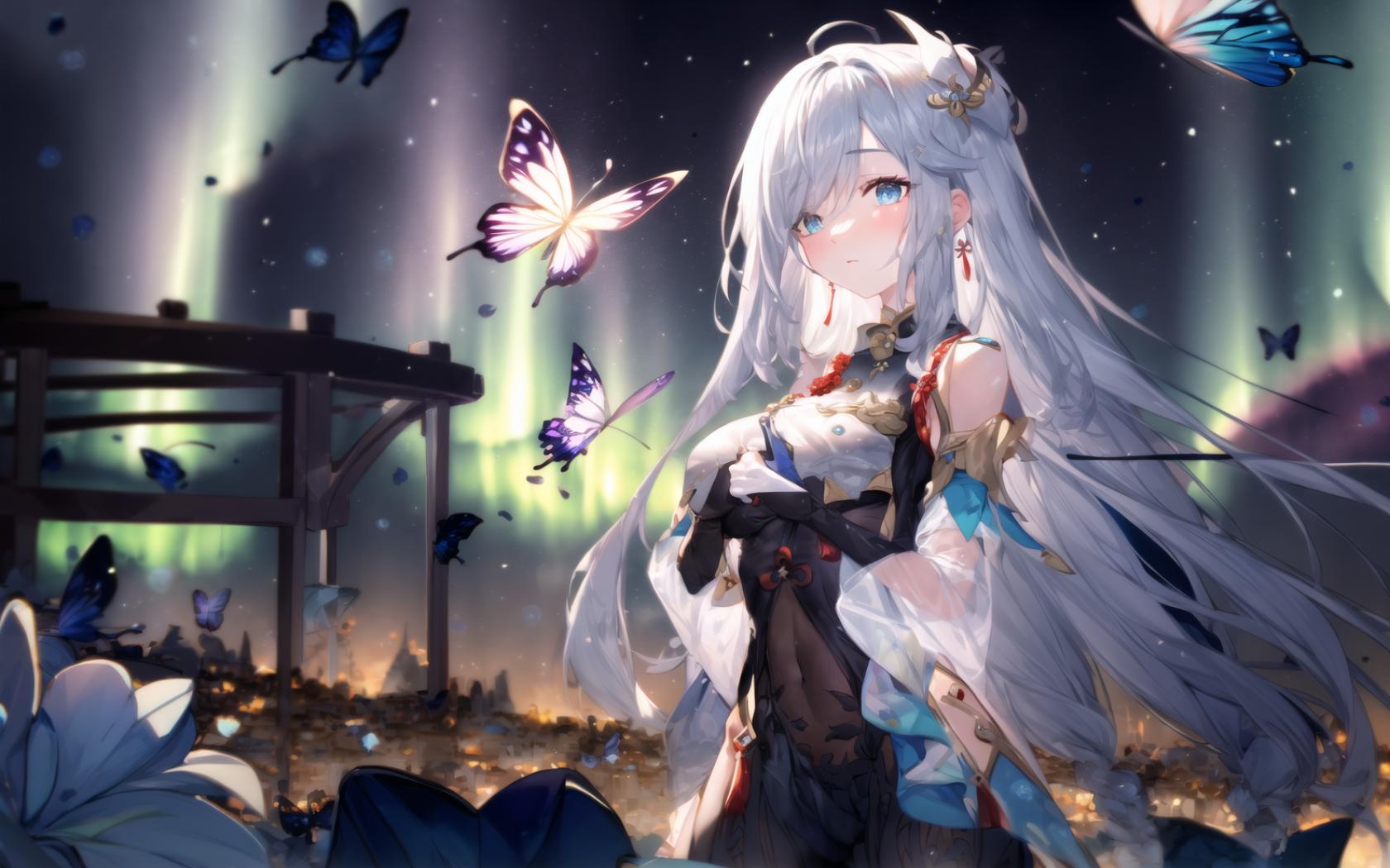 | Prompt | (highly detailed:1.5),(dramatic,romantic:1.2), (perfect artwork), best quality,(8k), (4k),(Masterpiece), (Best Quality), extremely detailed, intricate, hyper detailed, illustration, clearly worked out detail, intricate, cinematic,(depth of field), <lora:shenhe2:1>shenhedef, long white hair in the wind,((medium breast)), night, snow, snowflakes,mist,white flowers, ((moon,galaxy background,aurora borealis)), butterfly, (sad, pensive), snowy mountains, |