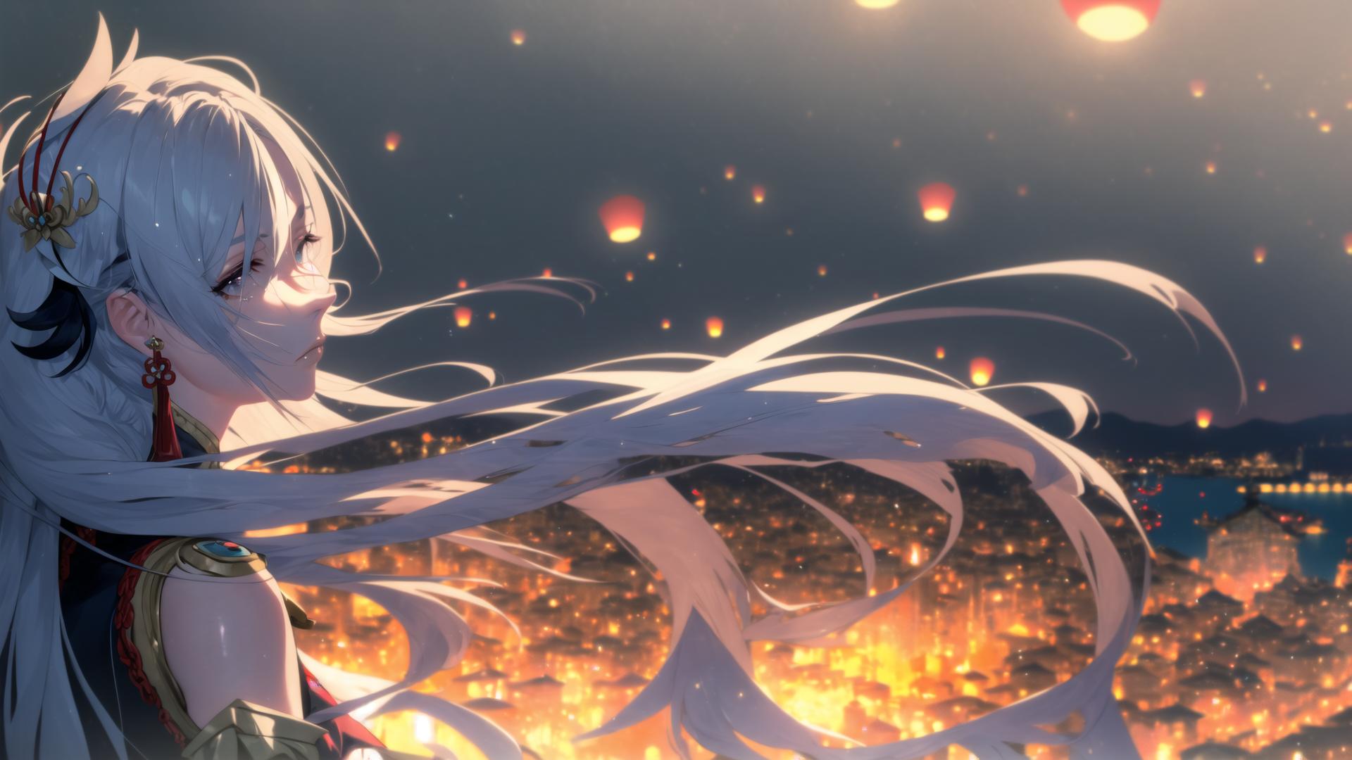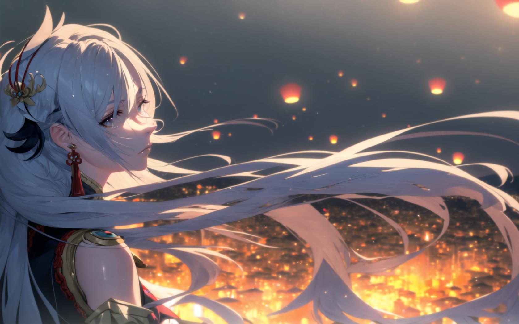 | Prompt | (epic, heroic, dramatic1.4),(highly detailed:1.5), (realistic:1.35),(romantic:1.2),octane render,(hyperrealistic:1.4),(skindentation:1.3), <lora:beautiful-eyes:0.7> (epic:1.1, perfect artwork), best quality,,(8k), (4k),(Masterpiece), (Best Quality), extremely detailed, intricate, hyper detailed, (perfect face), illustration,soft lighting, clearly worked out detail, intricate, cinematic,(depth of field), <lora:shenhe2:1>shenhedef,large breast, long white hair, (sunset), ((fireworks)), flying lanterns, (((medieval chinese harbor below))), mountains, tears in the wind, (sad), view from behind, ((head turned to the left of the picture), |