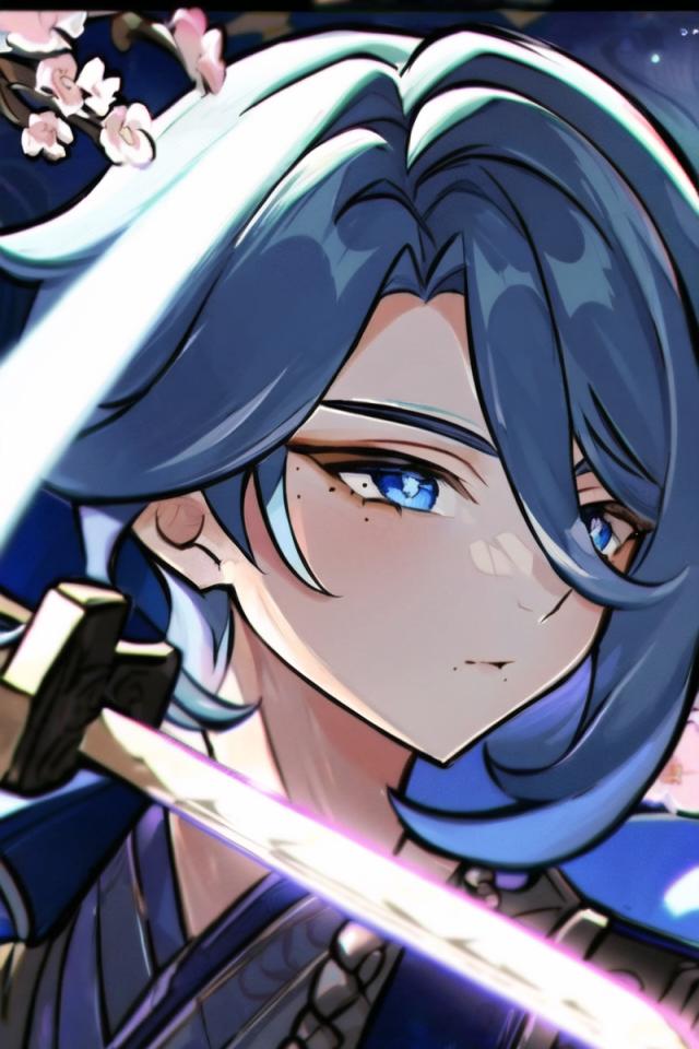 | Prompt | ( perfect artwork), best quality,sharp focus,(8k), (4k),(Masterpiece), (Best Quality), fantasy, extremely detailed, intricate, hyper detailed, (perfect face), illustration,soft lighting, Ultra detailed fantasy environment, clearly worked out detail, intricate, cinematic,(depth of field), ( dramatic lighting:1.2), <lora:ka:1>(1boy:1.2),blue hair, (business_suit), (complex details) ,(beautiful and delicate eyes), blue eyes, green pupils, delicate face,mole_under_mouth, messy floating hair, messy hair, ((male focus, muscular)), sakura trees, sakura blossoms,day, spring, medieval japanese temple, sakura tree, (((fighting with sword))), serious, <lora:GenshinStickers:1>chibi style:2, |