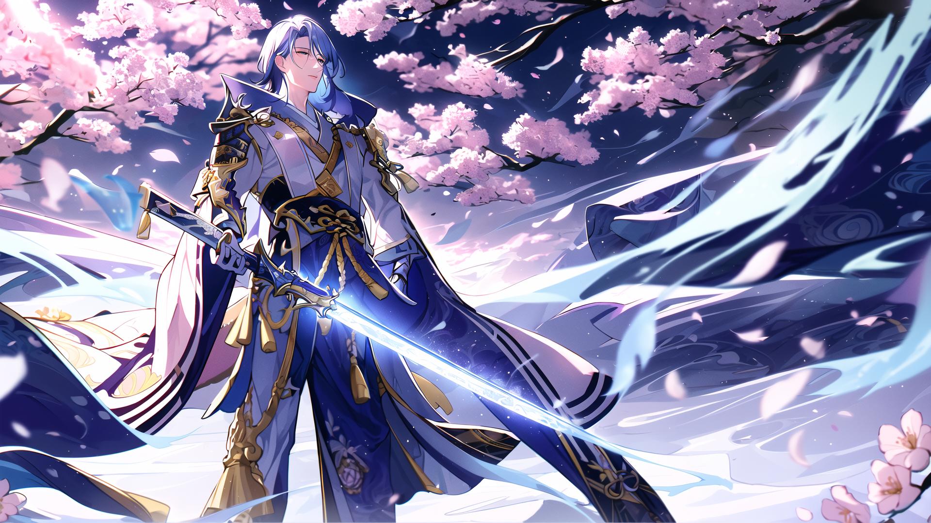 | Prompt | (dramatic:1.1),(highly detailed:1.5), (realistic, romantic:1.3),(heroic:1.4), (epic:1.5, perfect artwork), best quality,sharp focus,(8k), (4k),(Masterpiece), (Best Quality), fantasy, extremely detailed, intricate, hyper detailed, (perfect face), illustration,soft lighting, Ultra detailed fantasy environment, clearly worked out detail, intricate, cinematic,(depth of field), (soft lighting), <lora:ka:1>1boy, solo, male focus, day, spring, wind, holding glowing blue sword, japanese medieval mansion background, sakura trees, sakura blossoms, |