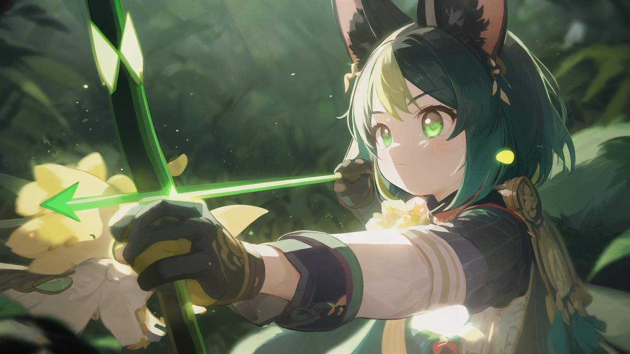 | Prompt | <lora:tighnari:0.8>tighnari (genshin impact), 1boy, animal ears, male focus, multicolored hair, yellow flower, medal, fox ears, black hair, green hair, green eyes, gloves, bird, flower, animal ear fluff, solo, blunt ends, vision (genshin impact), asymmetrical sleeves, fox boy, tassel,