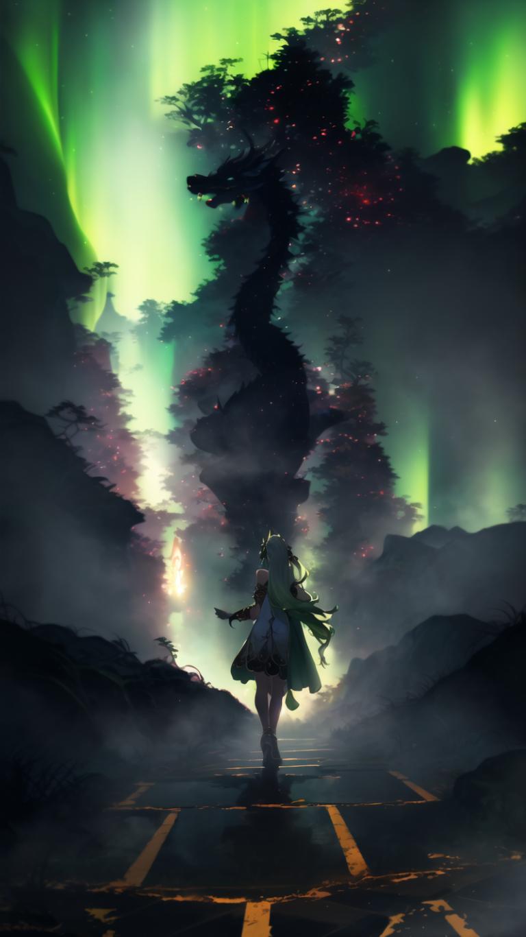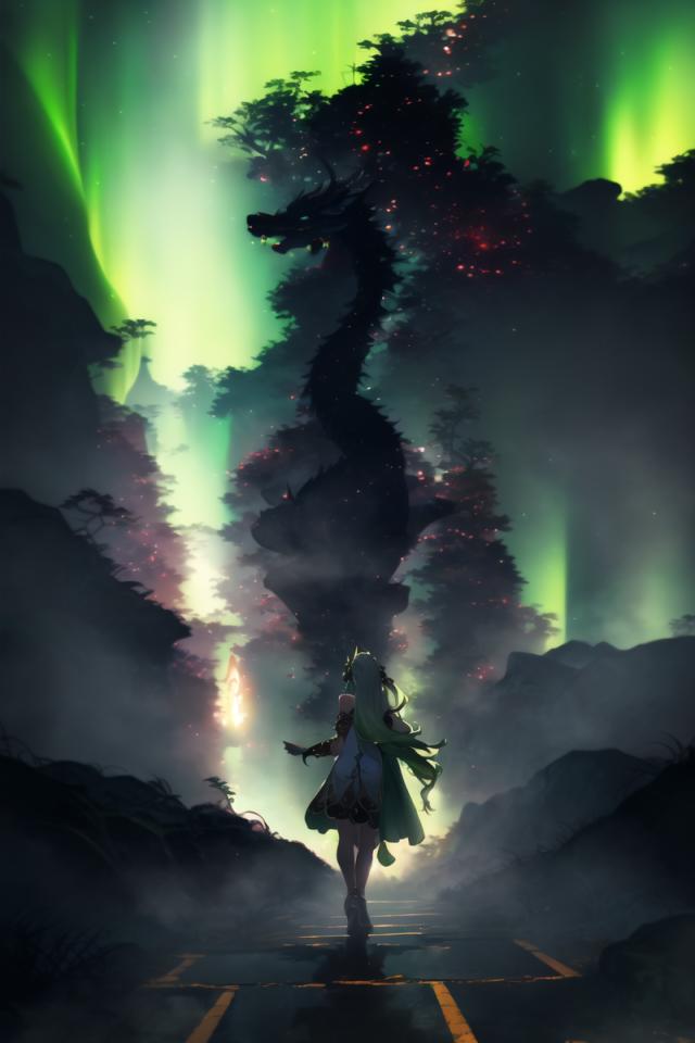 | Prompt | (epic:1.5, perfect artwork), best quality,dynamic pose,sharp focus,(8k), (4k),(Masterpiece), (Best Quality), fantasy, extremely detailed, intricate, hyper detailed, (perfect face), illustration,soft lighting,(specular lighting:1.4), Ultra detailed fantasy environment, clearly worked out detail, intricate, cinematic,(depth of field), (fantasy, dramatic:1.7), anime, <lora:nahida1:1>nahidadef, swinging above the clouds,clouds,((maelstrom,galaxy background,aurora borealis)), scary black mountains, mist, ((hidden mythical chinese dragon in the mist:1.2)), wasted lands, ((playing hopscotch, glowing green hopscotch on the ground:1.3)), wasted lands, view fron behind, |