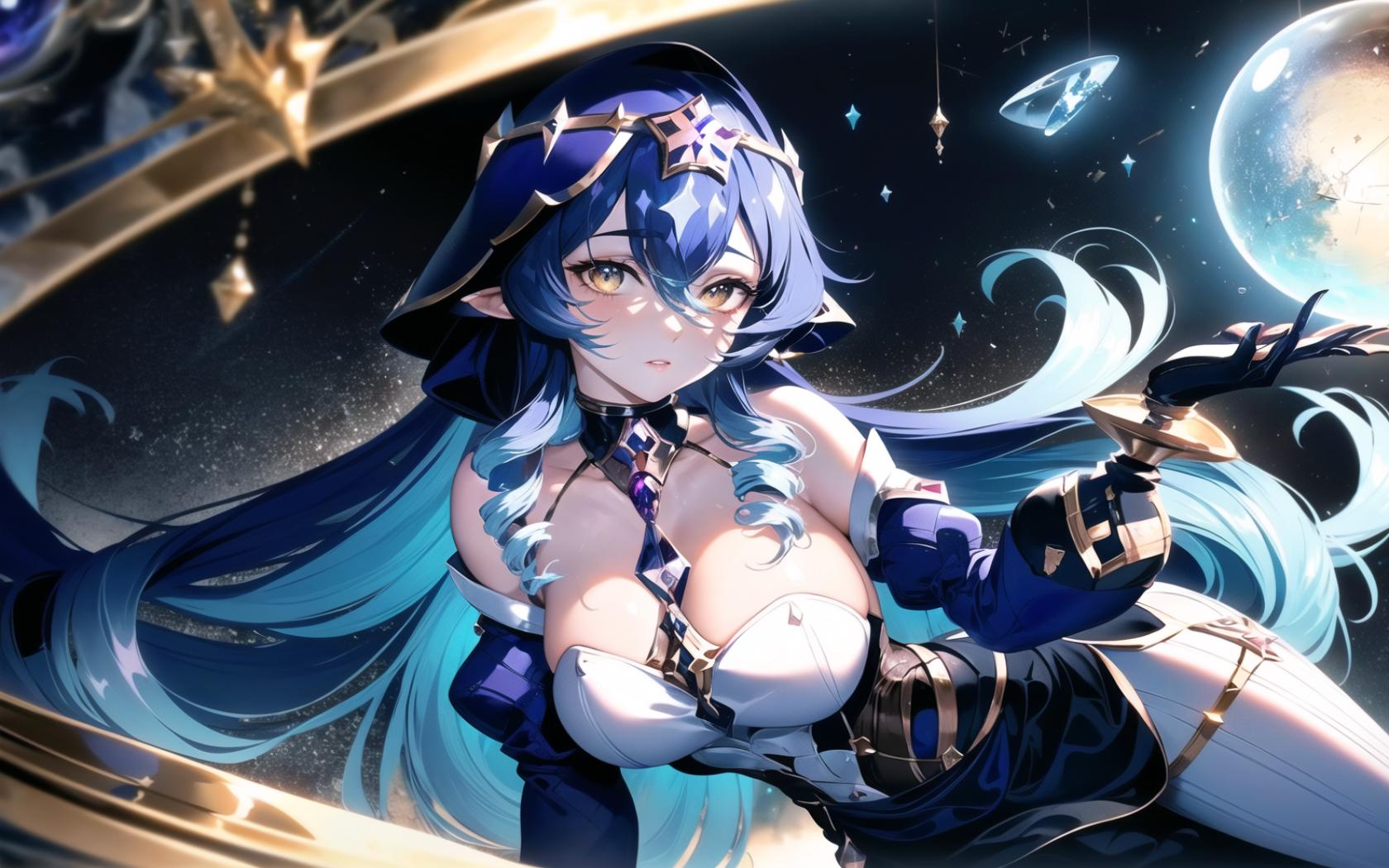 Prompt <lora:beautiful-eyes:0.6> (epic:1.5, perfect artwork), (highly detailed:1.6), best quality,dynamic pose,sharp focus,(8k), (4k),(Masterpiece), (Best Quality), fantasy, extremely detailed, intricate, hyper detailed, (perfect face), illustration, Ultra detailed fantasy environment, clearly worked out detail, intricate, cinematic,(depth of field), (romantic:1.4), (heroic:1.2), (dark atmosphere:1.7, dark fantasy art:1.2, digital art:1.3), (realistic:1.5),photorealistic, octane render,(hyperrealistic:1.2),(skindentation:1.3),(photorealistic face:1.2),(1girl:1.4), <lora:layla1:1>, layladef, 1girl, very long hair, (night, black sky, galaxy background:1.2), stars, black hole, nebula, (inside a giant magical frozen orb reflecting the galaxy:1.4), aurora borealis, (floating in the stars inside a magical orb), (sexy:1.2), (full body:1.3),
