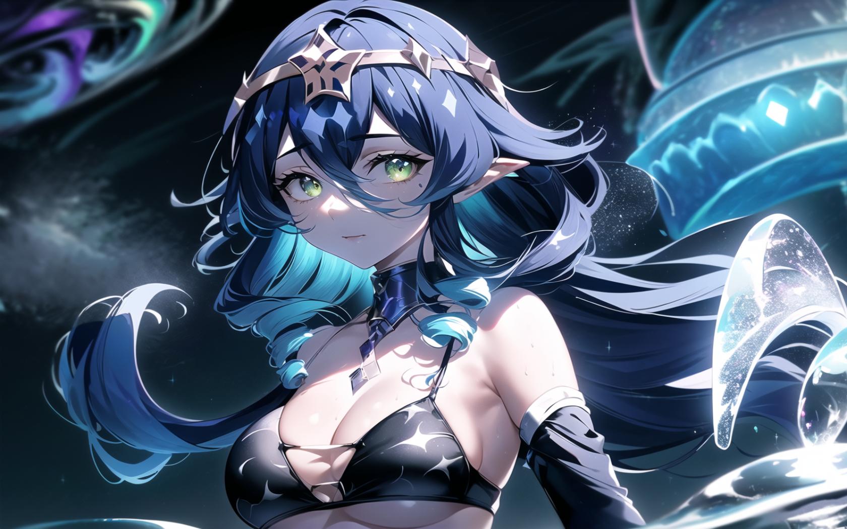 Prompt <lora:beautiful-eyes:0.6> (epic:1.5, perfect artwork), (highly detailed:1.6), best quality,dynamic pose,sharp focus,(8k), (4k),(Masterpiece), (Best Quality), fantasy, extremely detailed, intricate, hyper detailed, (perfect face), illustration, Ultra detailed fantasy environment, clearly worked out detail, intricate, cinematic,(depth of field), (romantic:1.4), (heroic:1.2), (dark atmosphere:1.8, dark fantasy art:1.5, digital art:1.3), (dramatic lighting:1.5),photorealistic, octane render,(hyperrealistic:1.2),(skindentation:1.3),(photorealistic face:1.2),(1girl:1.4), <lora:layla1:1.0>, laylarnd, 1girl, very long hair,medium breast, (galaxy printed bikini made of aurora borealis:1.5), wind, bare arms, bare legs, bare hands, (night, black sky, galaxy background:1.2), stars, black hole, nebula, (floating magical ice orbs:1.2), aurora borealis, (walking in nebula water made of aurora borealis:1.4), blush, smile, happy, surprised, wet, (looking at viewer), sexy,