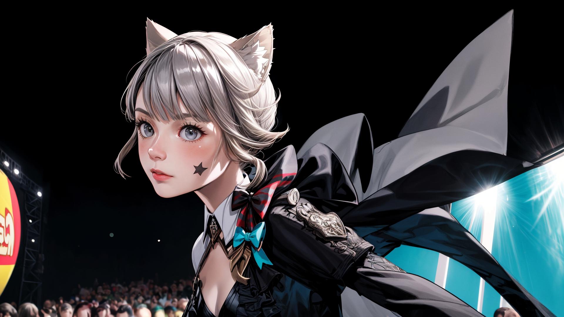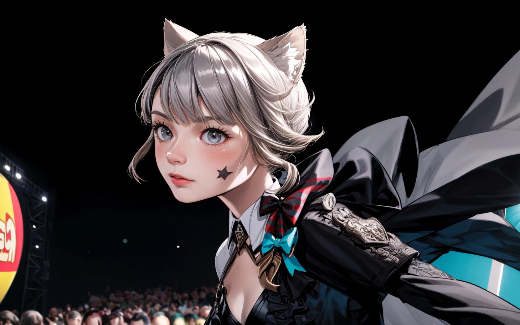 | Prompt | <lora:lynette02:1>1girl,lynette,hair bow,animal ears,grey hair,short hair,facial mark, bow,ribbon,capelet,black pantyhose, low ponytail, tail,