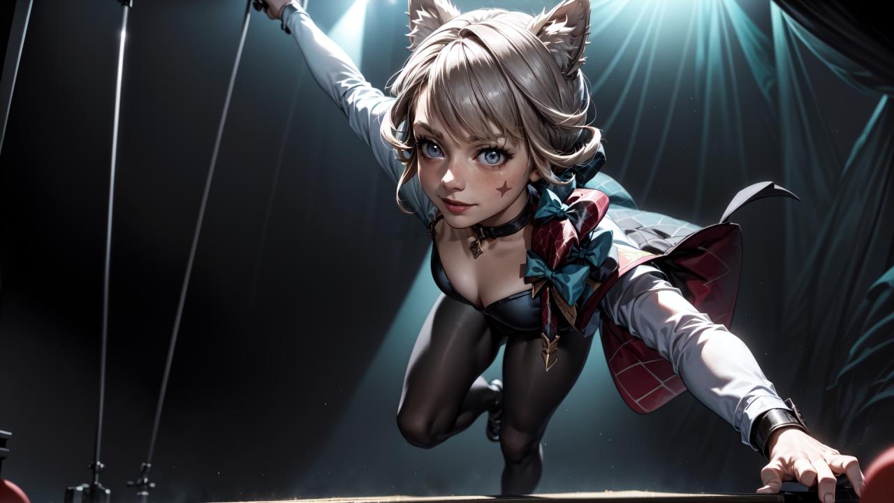 (circus background,light projectors),(((performing circus show))),